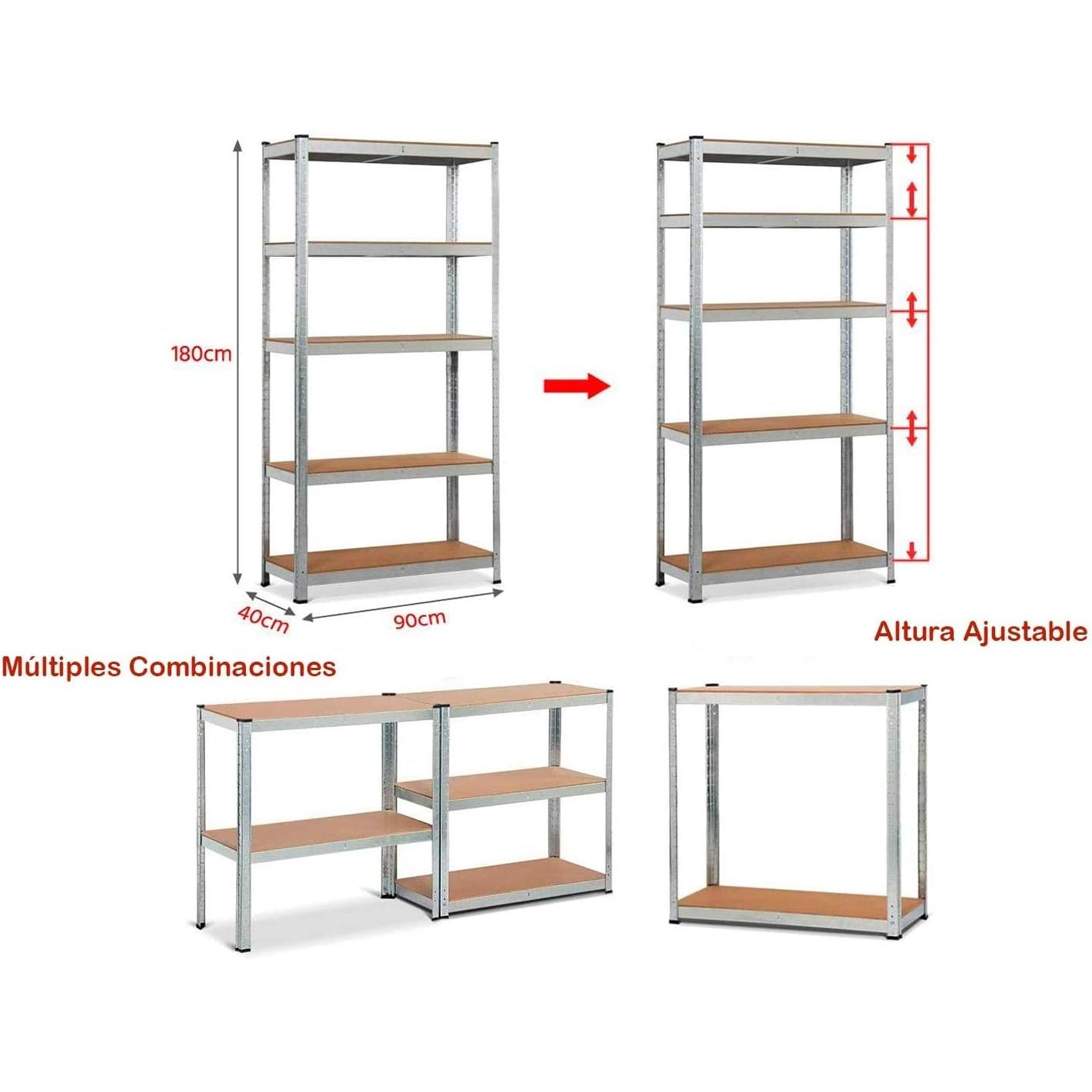 AMAZONa review.No patrocinada (pagué yo).Cualquier duda, pregunta.Compré 5 estanterias metalizadas de 180x90x45, una a 35 euros, las otras 4 a 29.Además, una azul de 180x120x60 a 56 euros. Esta última la que más fuerte me ha parecido.Facilisimas de montar (las monte yo sola todas) excepto una metálica que las aperturas para encajar las pestañas estaban muy cerradas.